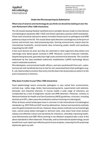 Submission to the Under the Microscope Inquiry: Portable Diagnostics and AMR Detection
